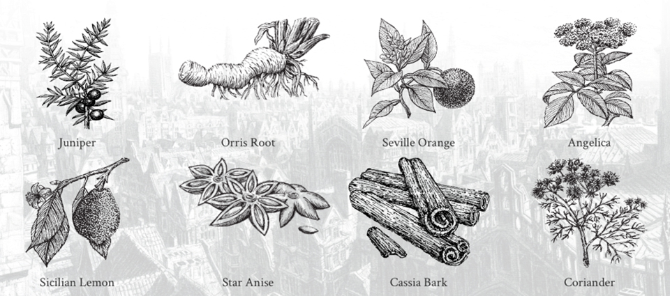 Los ocho botánicos utilizados en la gama son: enebro, raíz de naranjo, naranjas de Sevilla, angélica, limón siciliano, anís estrellado, corteza de casia y cilantro.